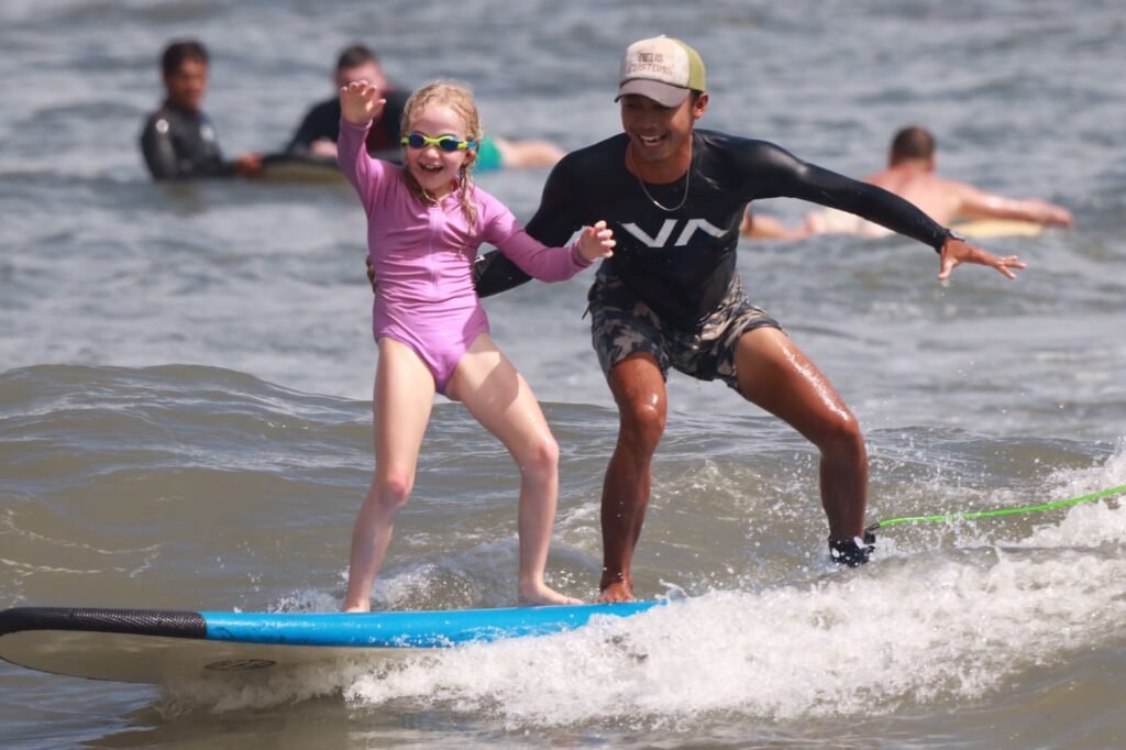 Our proven learn to surf method is a systematic approach to teaching people the proper mechanics of the act of surfing. Our lessons incorporate a land portion to learn about waves and test your balance and plenty of time in the water with our instructors to catch some waves!